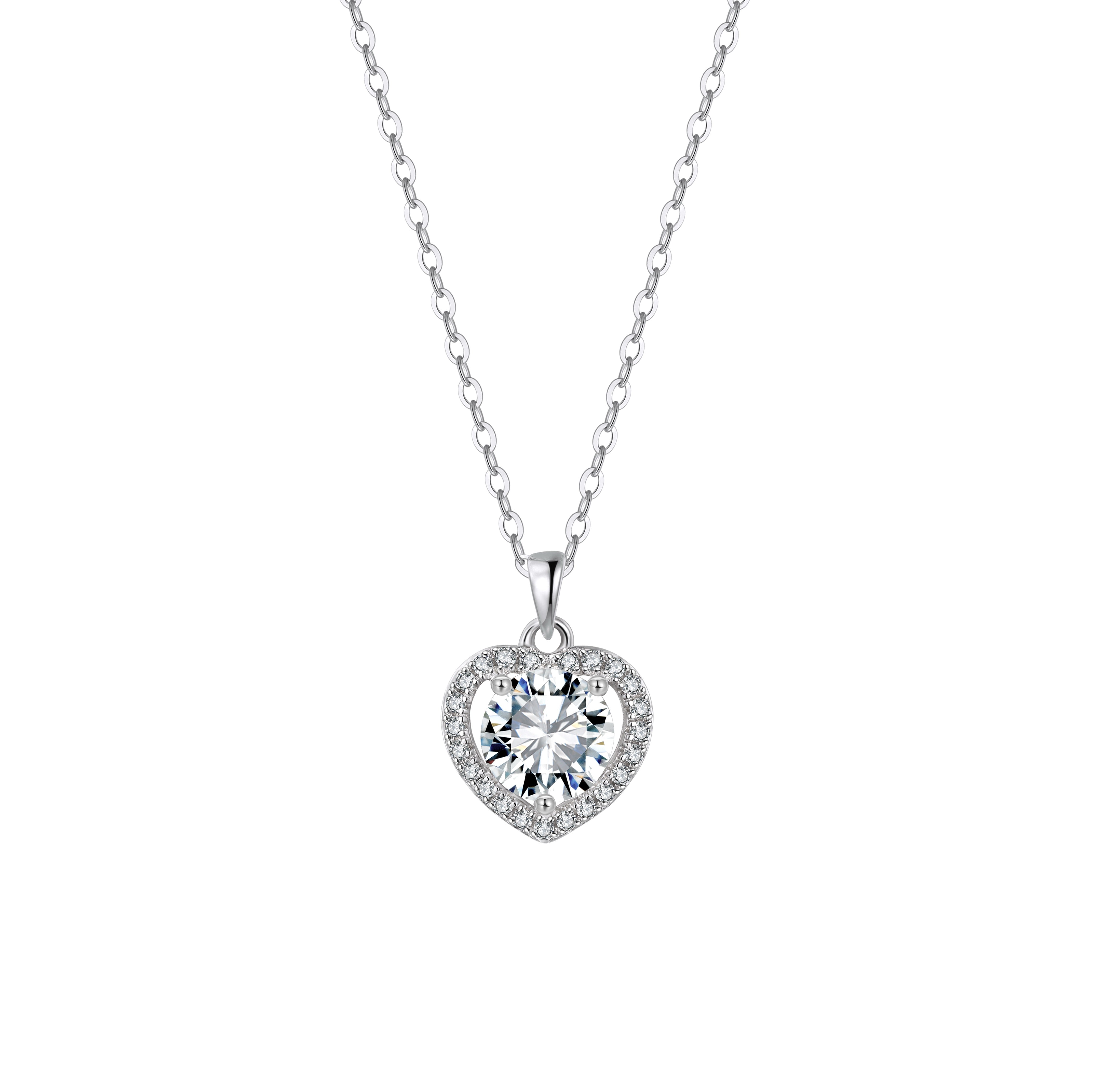 Sterling Silver Moissanite Heart Necklace 1.00CT MON10-P