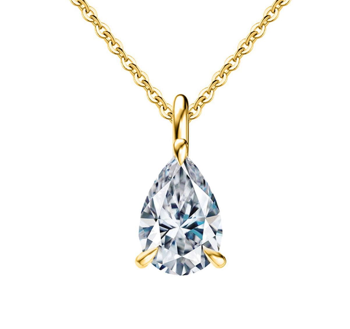 Sterling Silver Moissanite Necklace Pear Cut YG Plated 7x10mm MON02-14K-7x10