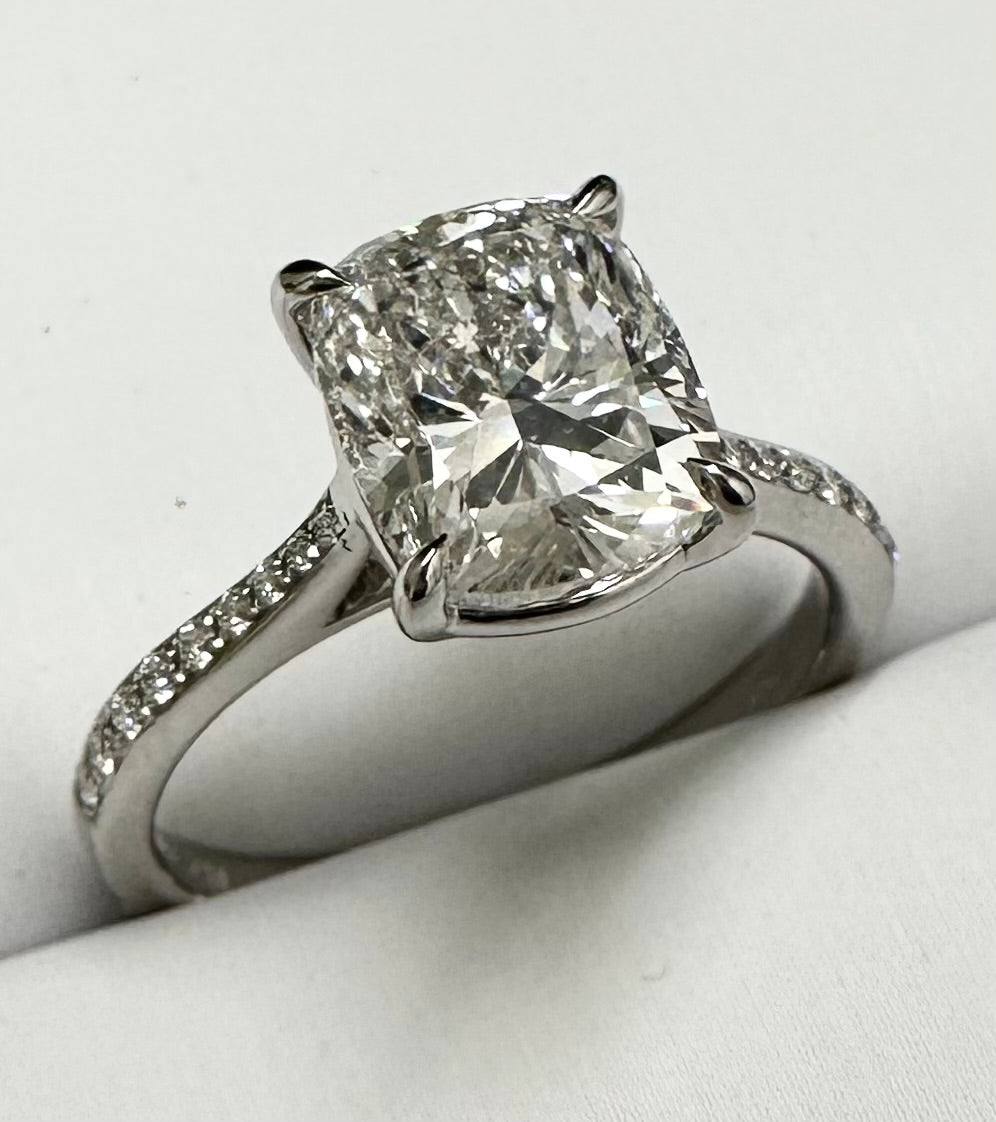 14KW LAB Diamond Ring 18LGD0.11CTW, 1LGD2.54CTS Elongated Cushion F-VS1 IGI651439839 LWE2093R4WW
