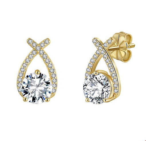 Sterling Silver Moissanite Fancy Earring YG Plated 2.00CTW MOE12-14K