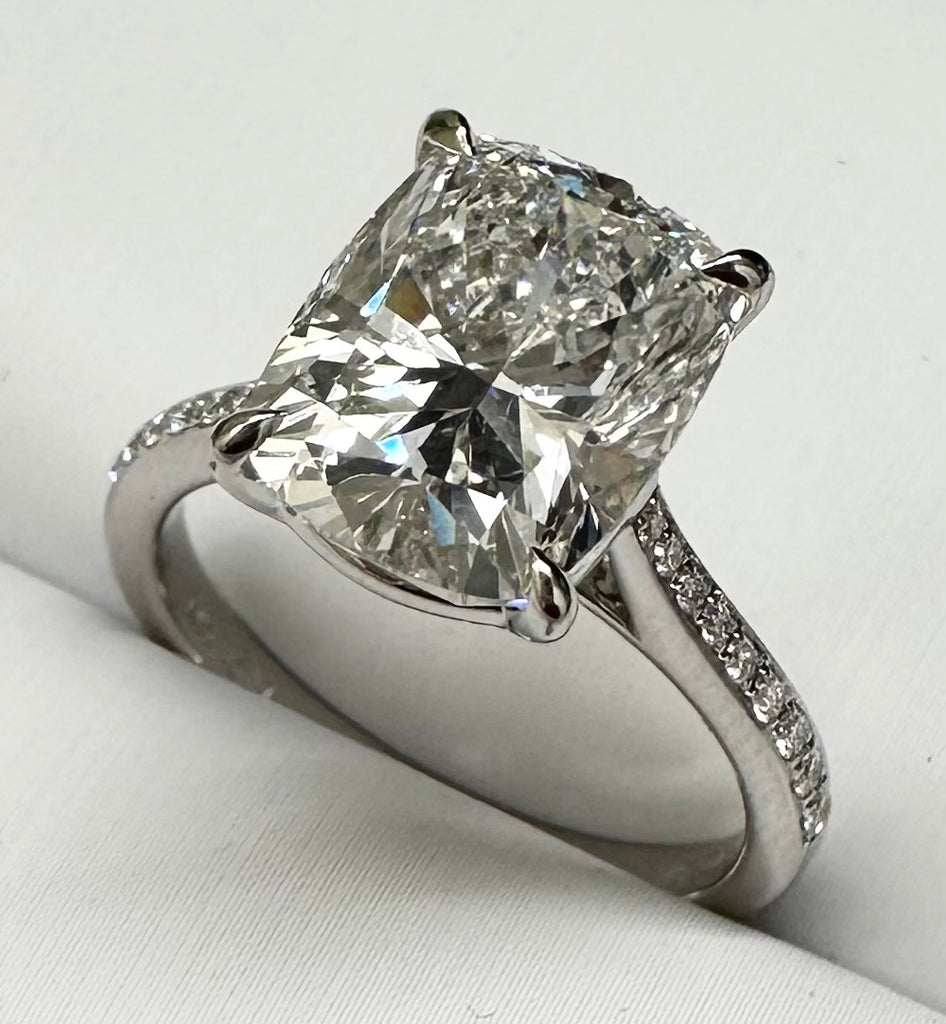 14KW LAB Diamond Ring 18LGD0.11CTW, 1LGD4.34CTS Elongated Cushion F-VVS2 IGI627415462 LWE2093V4WW