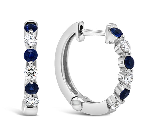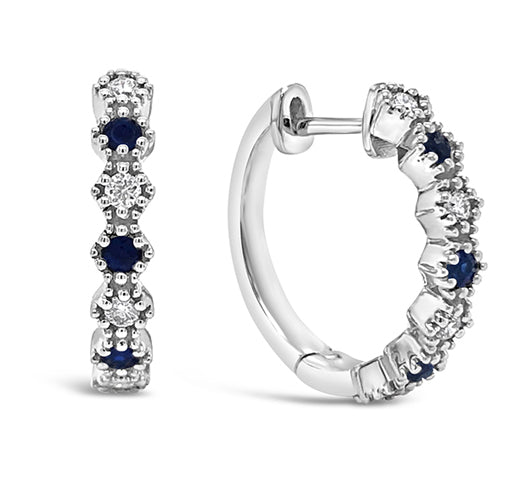 14K WG Diamond and Sapphire Hoop Earring 8DD0.08CTW, 8SA0.10CTW JE8263B-4W8SA